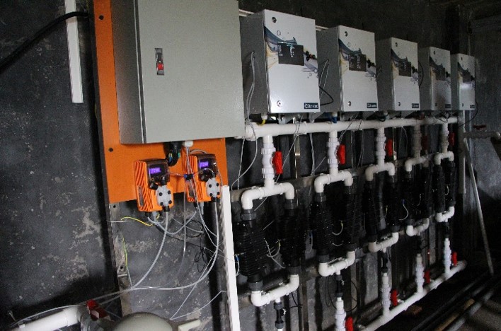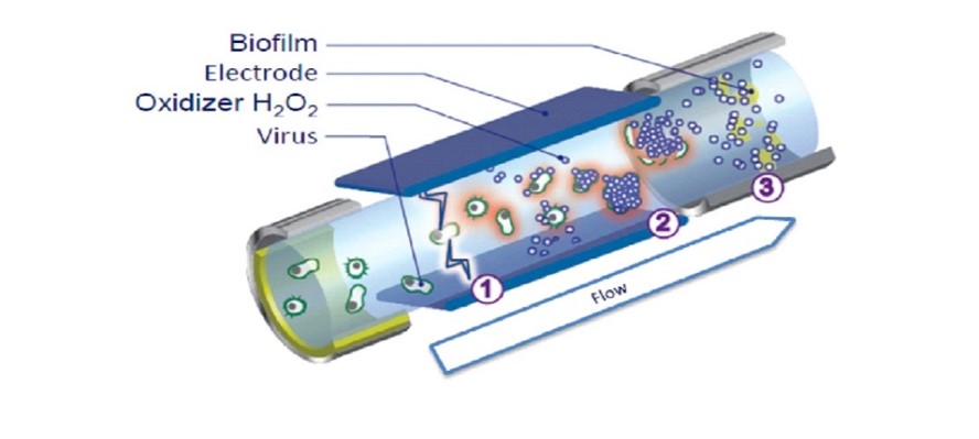 Là công nghệ do Dunetec phát triển, lợi dụng nguyên lý điện phân và trao đổi ion. Bộ giải pháp Inline Electrolysis gồm các bước xử lý nước như sau: